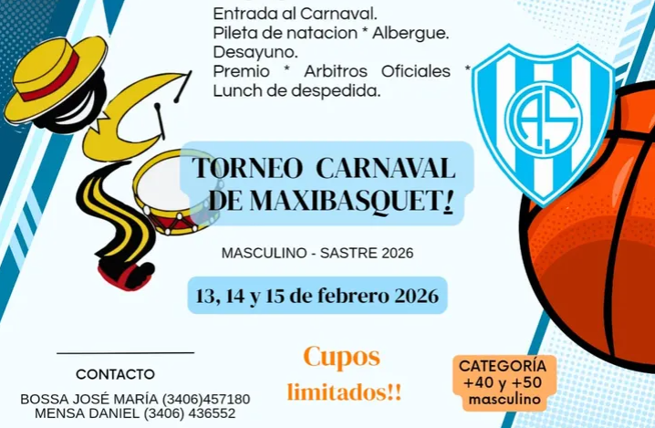 Los próximos 13, 14 y 15 de febrero, el Club Atlético Sastre recibirá a la sexta edición de su ya consagrado certamen de Maxibásquet, un evento que se ha consolidado como un referente regional por su nivel competitivo y calidez organizativa. Básquet, piletas y carnaval, es el combo perfecto que proponen los veteranos de la Academia para cada verano.