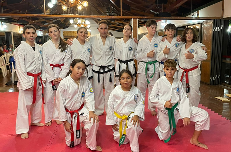 La delegación academica se trasladó hacia la vecina localidad con un equipo de alumnos que fueron protagonistas centrales de la noche. Durante la jornada, los representantes de la AKD realizaron una demostración de sus habilidades, reflejando el compromiso y la disciplina con la institución.